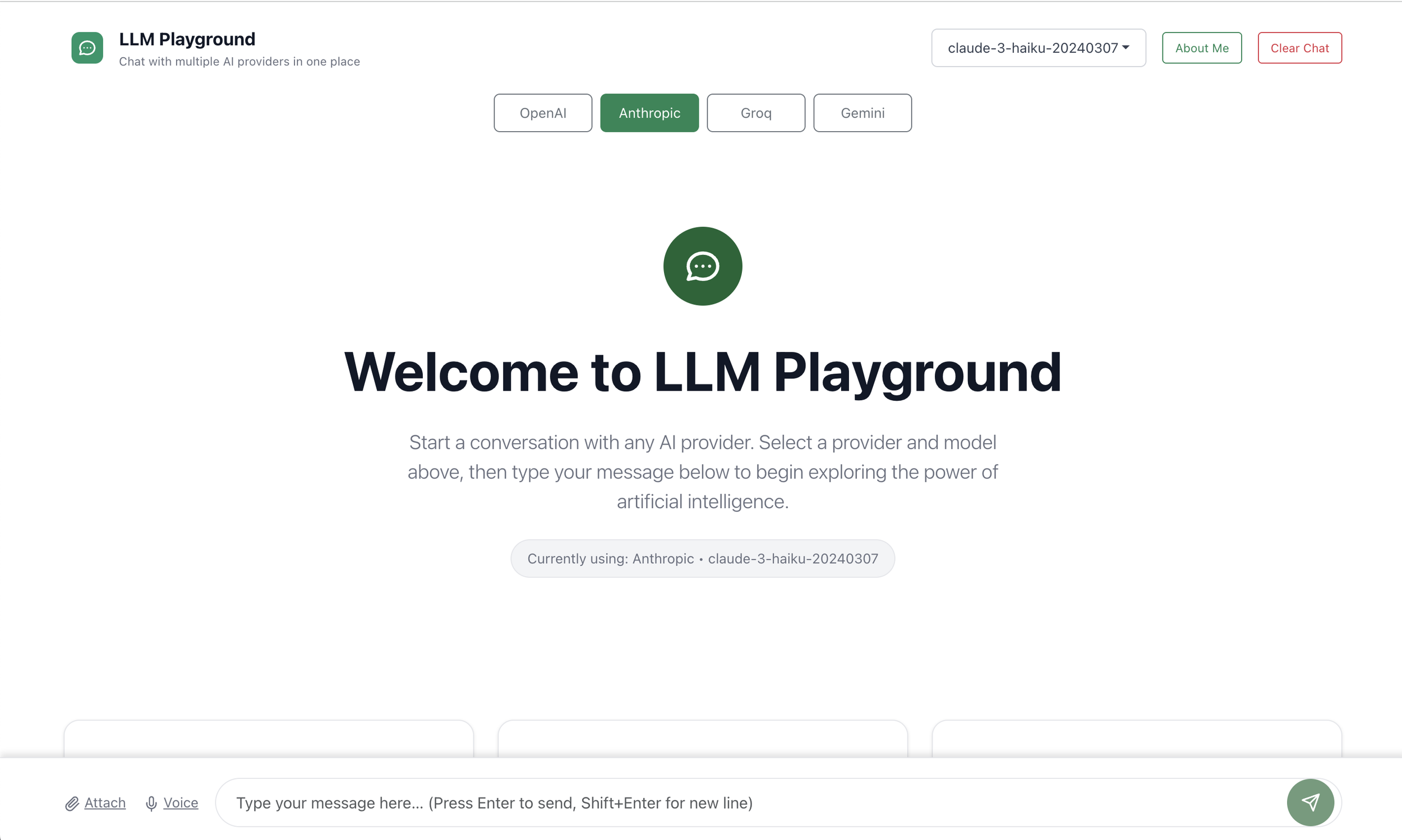 Unified interface to chat, compare, and prototype across OpenAI, Anthropic, Groq, Gemini, and other LLM providers.